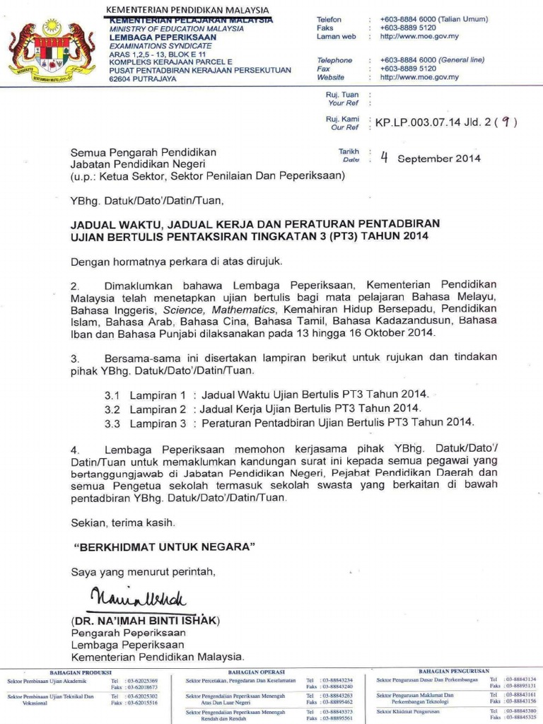 Contoh Surat Rasmi Pelantikan Pengawas Peperiksaan Pt3